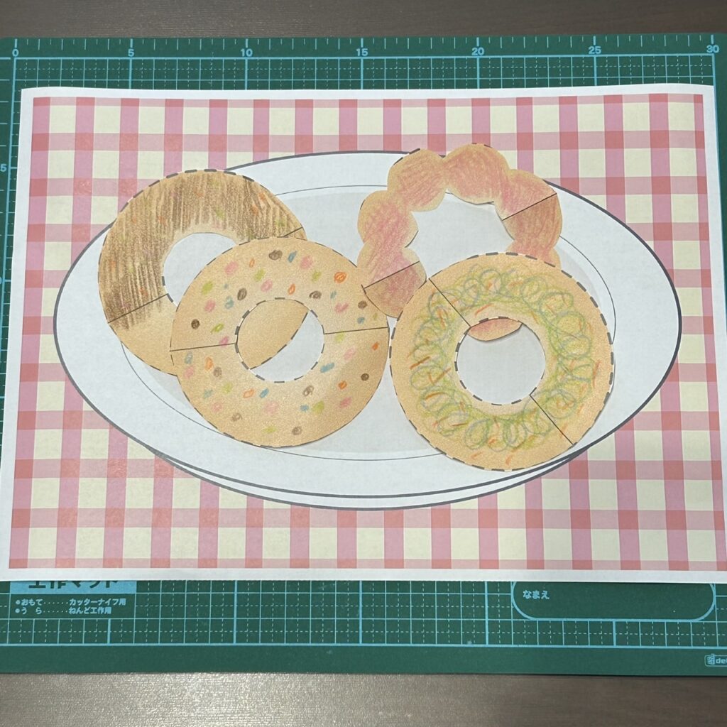 1. 「ドーナツの切り方」を参考に、ドーナツを切る