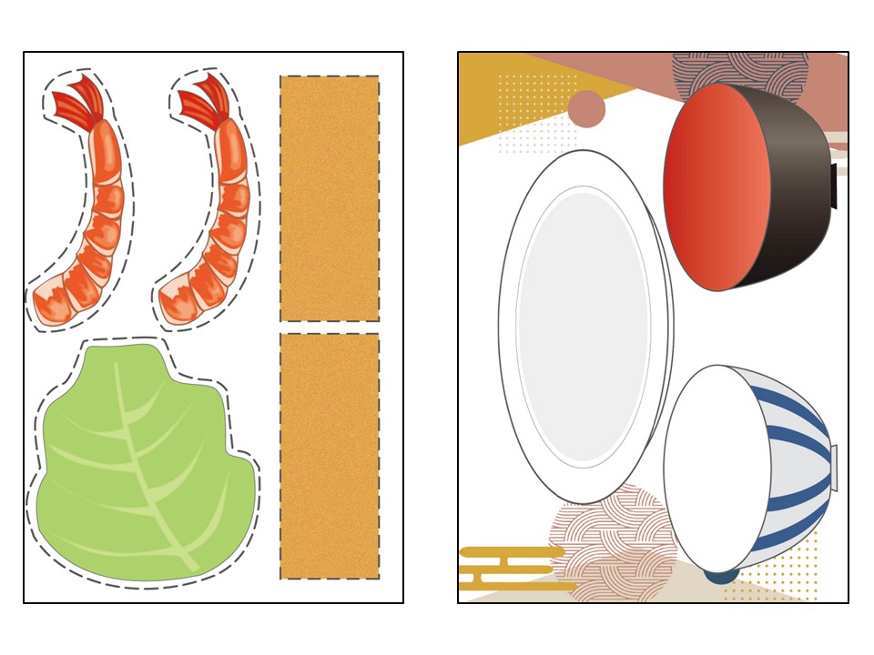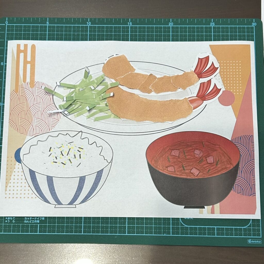 4. 1と2で切った具材をのりで貼る