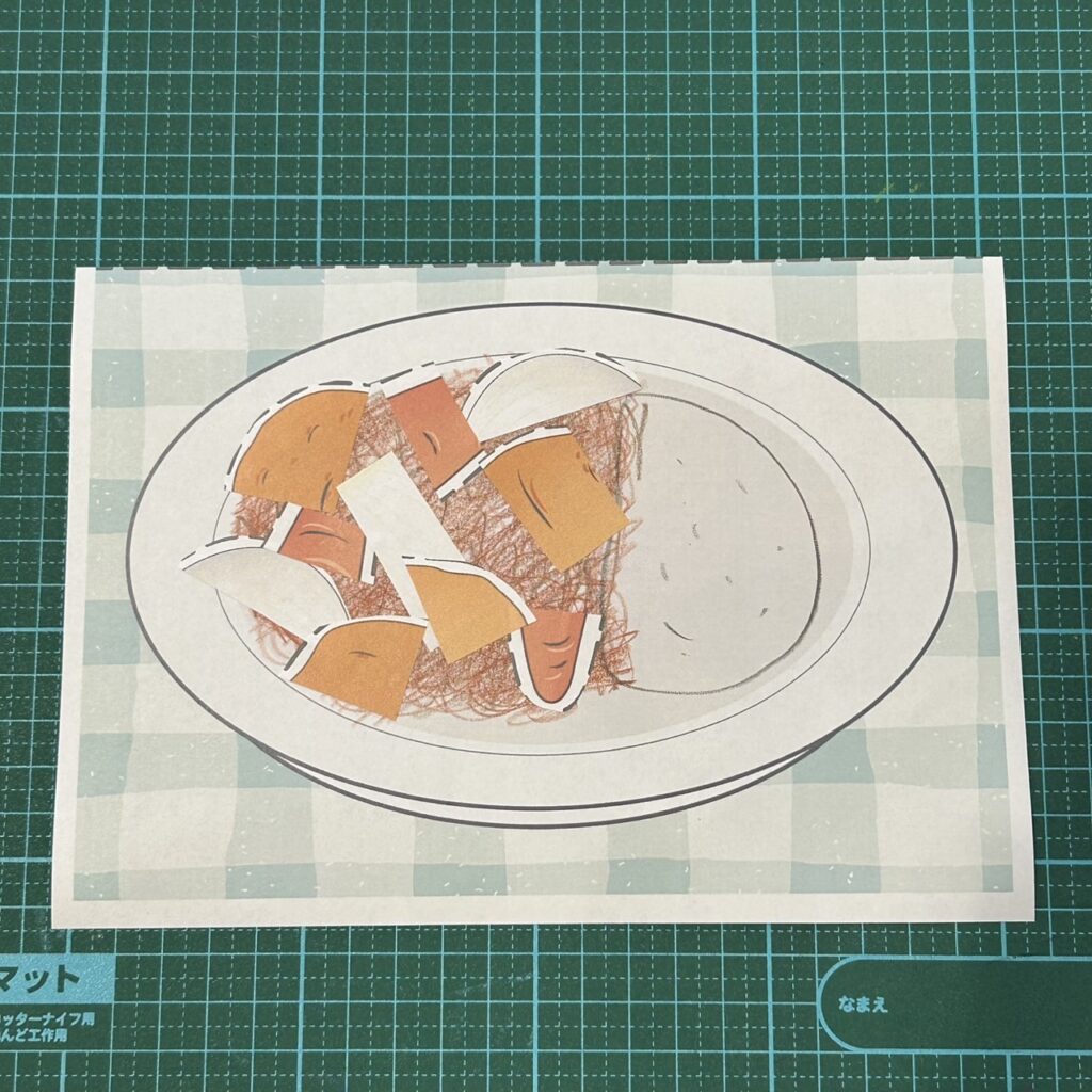 4. 2でカットした具をカレールーの上にのりで貼る
